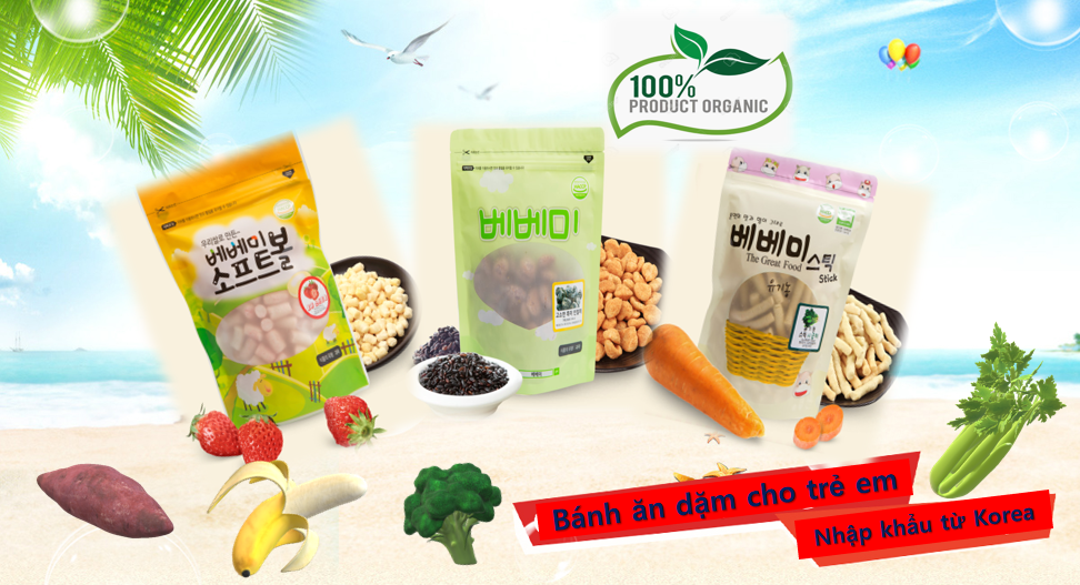 KoreaBaby Snack - Thực phẩm ăn dặm cho trẻ Ăn dặm được xem là bước ngoặt lớn trong quá trình phát triển của trẻ, đánh dấu sự chuyển giao giữa việc trẻ làm quen với các loại thức ăn mới thay cho sữa mẹ hay các loại sữa công thức. Vì vậy, dinh dưỡng cho trẻ là 100% hữu cơ trong thời gian ăn dặm rất quan trọng. Thời điểm này trẻ dễ bị suy dinh dưỡng nếu không được chăm sóc hợp lý hay bổ sung đầy đủ các dưỡng chất cần thiết. Korea Baby Snack chuyên cung cấp các loại bánh, thực phẩm ăn dặm của bé, được nhiều bậc phụ huynh tin tưởng lựa chọn cho trẻ từ 6 tháng tuổi trở lên. Sản phẩm xuất xứ Hàn Quốc, đảm bảo dinh dưỡng, độ an toàn bởi tính năng hữu cơ nhiều. ![]() ![]() không chỉ giúp bé luyện tập cơ hàm, cơ lưỡi mà còn cung cấp hàm lượng các vitamin, vi chất cần thiết, đảm bảo dinh dưỡng, năng lượng cho sự phát triển toàn diện của trẻ. Thực phẩm ăn dặm cho trẻ Korea Baby Snack: